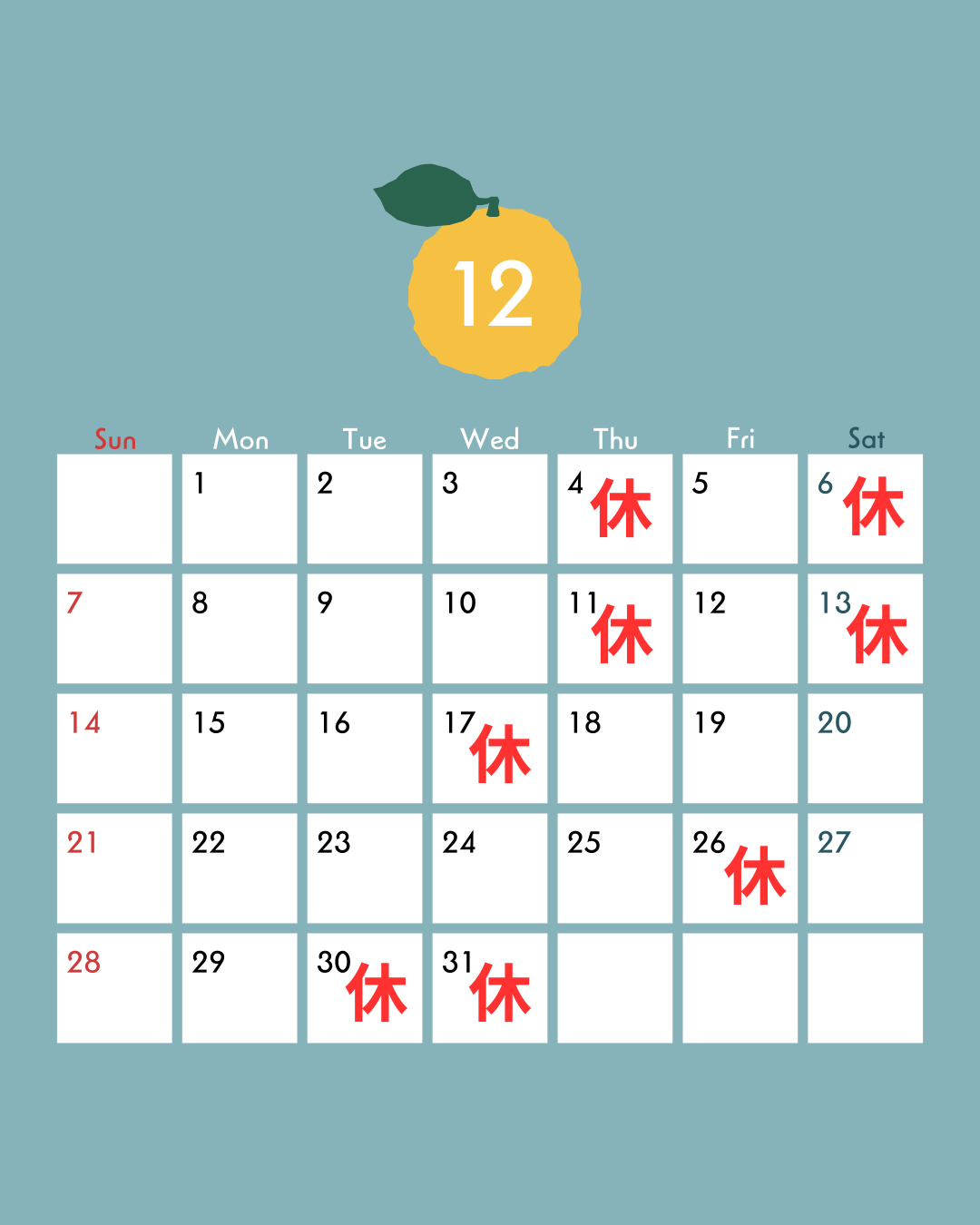 12月のお休みのお知らせ